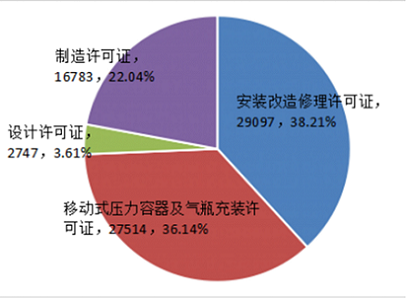 截至(zhi)2021年年底(dǐ),全國共有特種設(she)備生産(含設計、制(zhì)造、安裝、改造、修理(lǐ))和充裝單位75134家,持有許可證76141張,其中:設計單(dān)位2742家,持(chí)有許可證2747張(zhāng);制造單位16278家,持有許(xu)可證16783張;安裝改造修理單(dān)位29061家,持(chí)有許可證29097張(zhāng);移動式(shi)壓力容器及氣瓶(píng)充裝單位27053家,持有許可證(zheng)27514張。(見圖(tu)2)