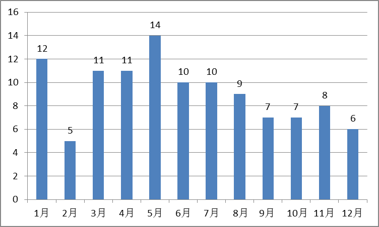 圖7 2021年1—12月特種設(she)備事故起數分布(bu)圖