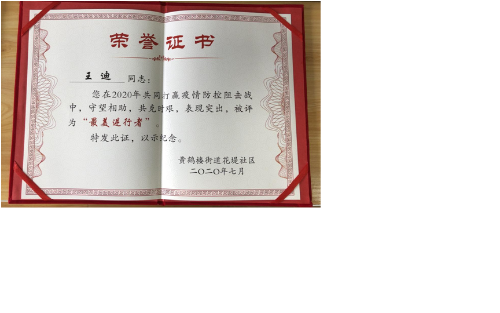 12月3日上(shàng)午9:30時,黃(huáng)鶴樓街(jie)道花堤(dī)社區舉(ju)行“最美(měi)志願🏃🏻者(zhě)”表彰活(huo)動。王迪(di)同志作(zuo)為湖北(běi)聖信特(te)種設備(bei)檢🌂測有(yǒu)🌍限公司(sī)的一名(míng)💞黨員,在(zài)抗疫最(zuì)艱難的(de)時刻,主(zhu)動請纓(ying),向戰前(qian)行,用實(shí)際行動(dòng)🏃踐行一(yi)名黨員(yuán)“不忘初(chū)心、牢記(jì)使命,扛(káng)起責任(ren)、經受考(kǎo)驗”的铮(zhēng)铮誓言(yan),獲得“最(zuì)美逆行(hang)者”榮譽(yu)稱号。
