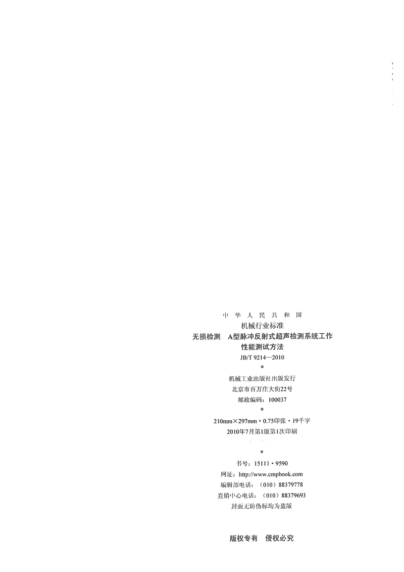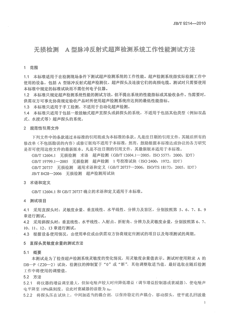 JBT 9214-2010 A男的🔞插曲女的叫㊙️型脈沖反(fan)射式超聲檢測(cè)系統工作性能(néng)測試方法