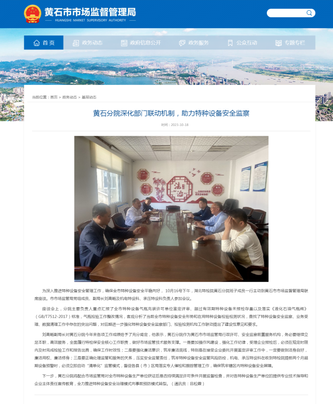 黃石(shi)市市場監督管(guan)理局網站(2023.鼹鼠🔞的故事国语版㊙️12.03)黃石(shi)分院深化部門(men)聯動🌈機制,助力(li)特種設備安全(quan)監察