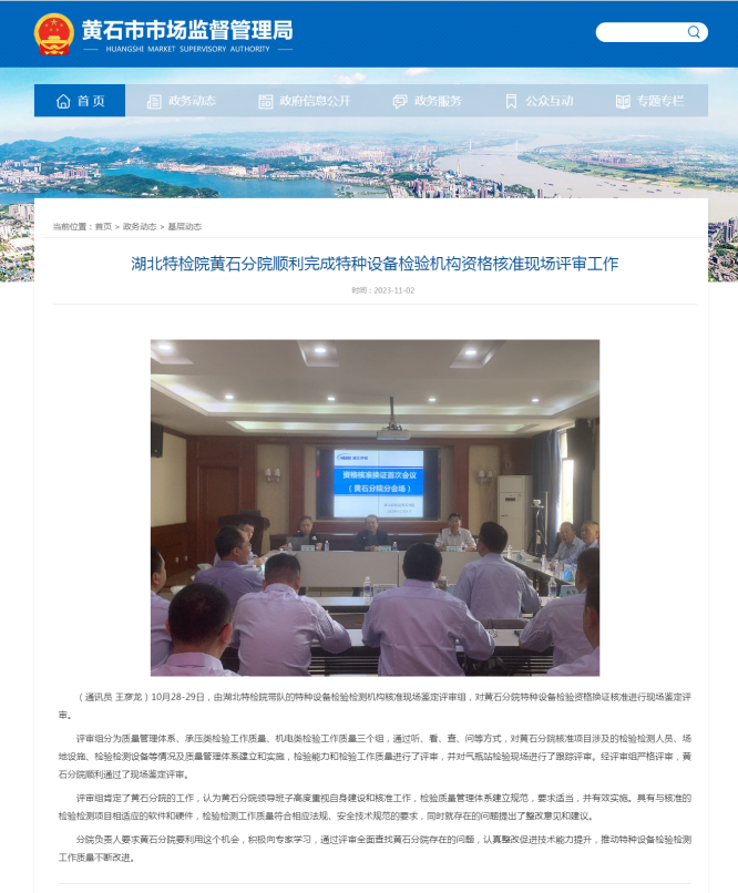 黃(huáng)石市市場監(jian)督管理局網(wǎng)站(2023.色情永久免费网站🚩WWW㊙️12.03)厦门成同机电制造有限公司(3G网站)黃石分院(yuan)順利完成特(te)種設備檢驗(yan)機構資格核(he)準現場評審(shěn)工作