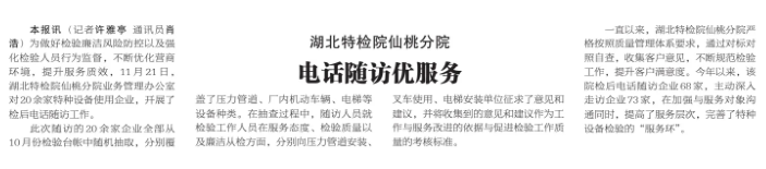 仙桃(táo)周刊(2025.12.03)仙(xian)桃分院(yuàn)電話随(suí)訪優服(fú)務