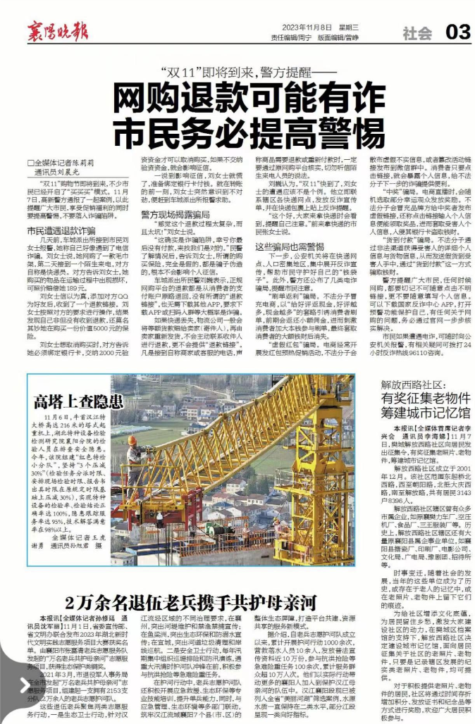 襄陽日報(bao)(2025.12.03)厦门成同机电制造有限公司(3G网站)襄陽分院(yuàn)高塔服務(wù)查隐患